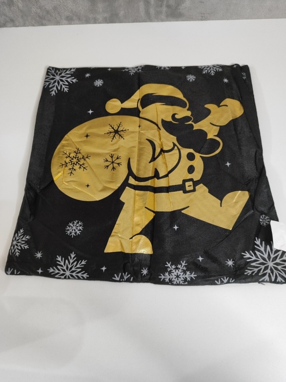 Czarna poszewka przedstawia radosnego Mikołaja z workiem pełnym prezentów. Złoty nadruk pięknie kontrastuje z ciemnym tłem, a delikatne śnieżynki dodają jej zimowego uroku.