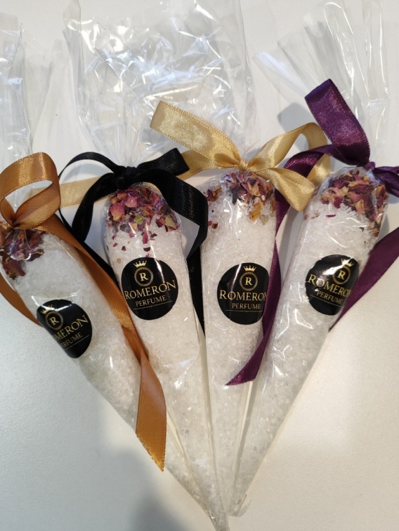 Romeron Perfume Bath Salt — rytuał zanurzenia w zapachu. Zamknięta w przezroczystym stożku niczym kryształowy eliksir, sól do kąpieli Romeron Perfume to celebracja zmysłów i chwili dla siebie. Jej śnieżnobiała struktura, ozdobiona płatkami suszonych kwiatów i przewiązana satynową wstążką, przypomina zaproszenie do prywatnego spa — pełnego aromatów, ciszy i regeneracji.